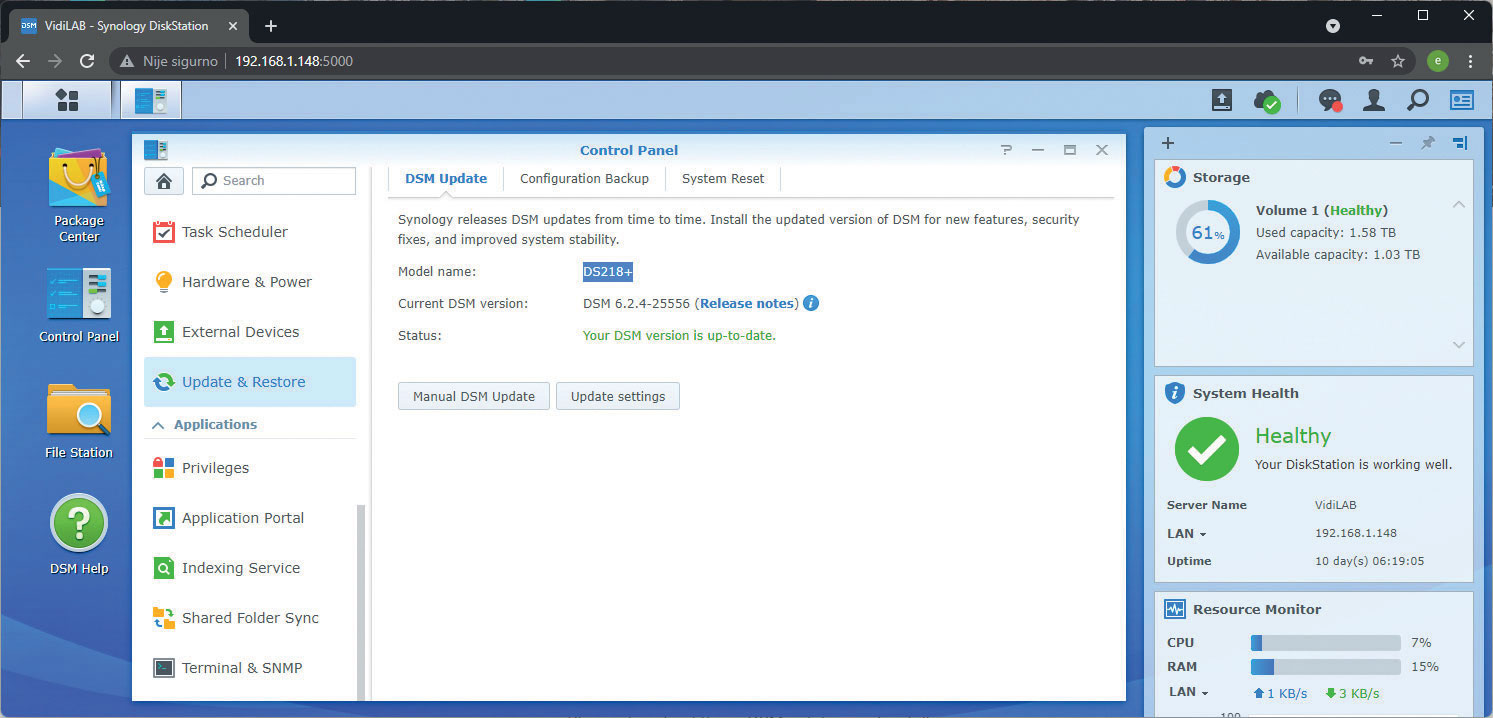 Sada je potrebno otići u Control Panel kako biste pokrenuli Manual DSM Update