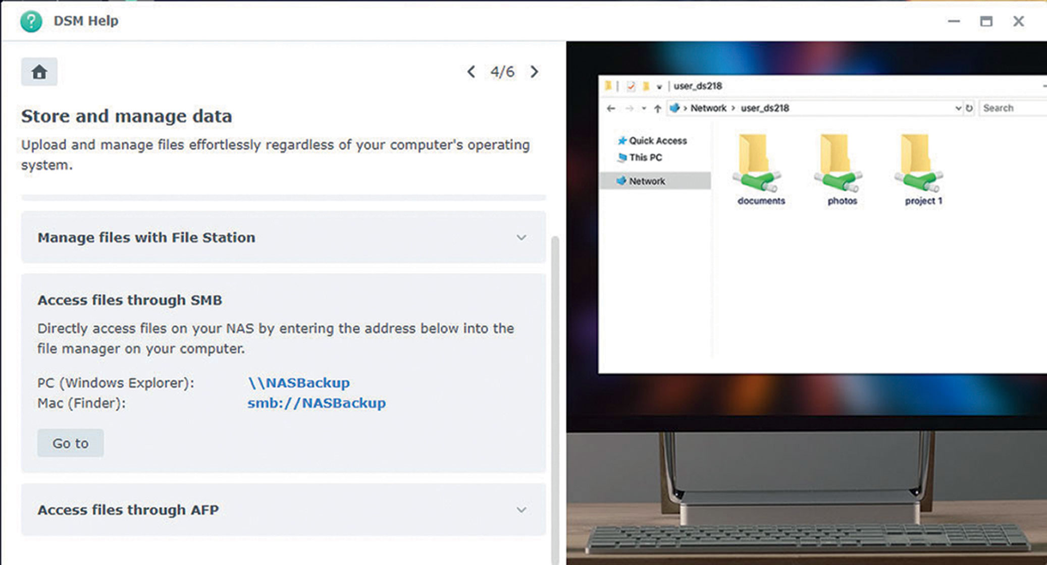 U preostala dva koraka DSM Help će vam pomoći postaviti backup podataka s računala ili, recimo, fotografija s mobitela, a podatke možete sinkronizirati i s nekim drugim popularnim Cloud providera poput Dropboxa, Google Drivea, OneDrivea, MegaDiska i drugih te, naravno, backup vašeg NAS uređaja na drugi NAS uređaj.