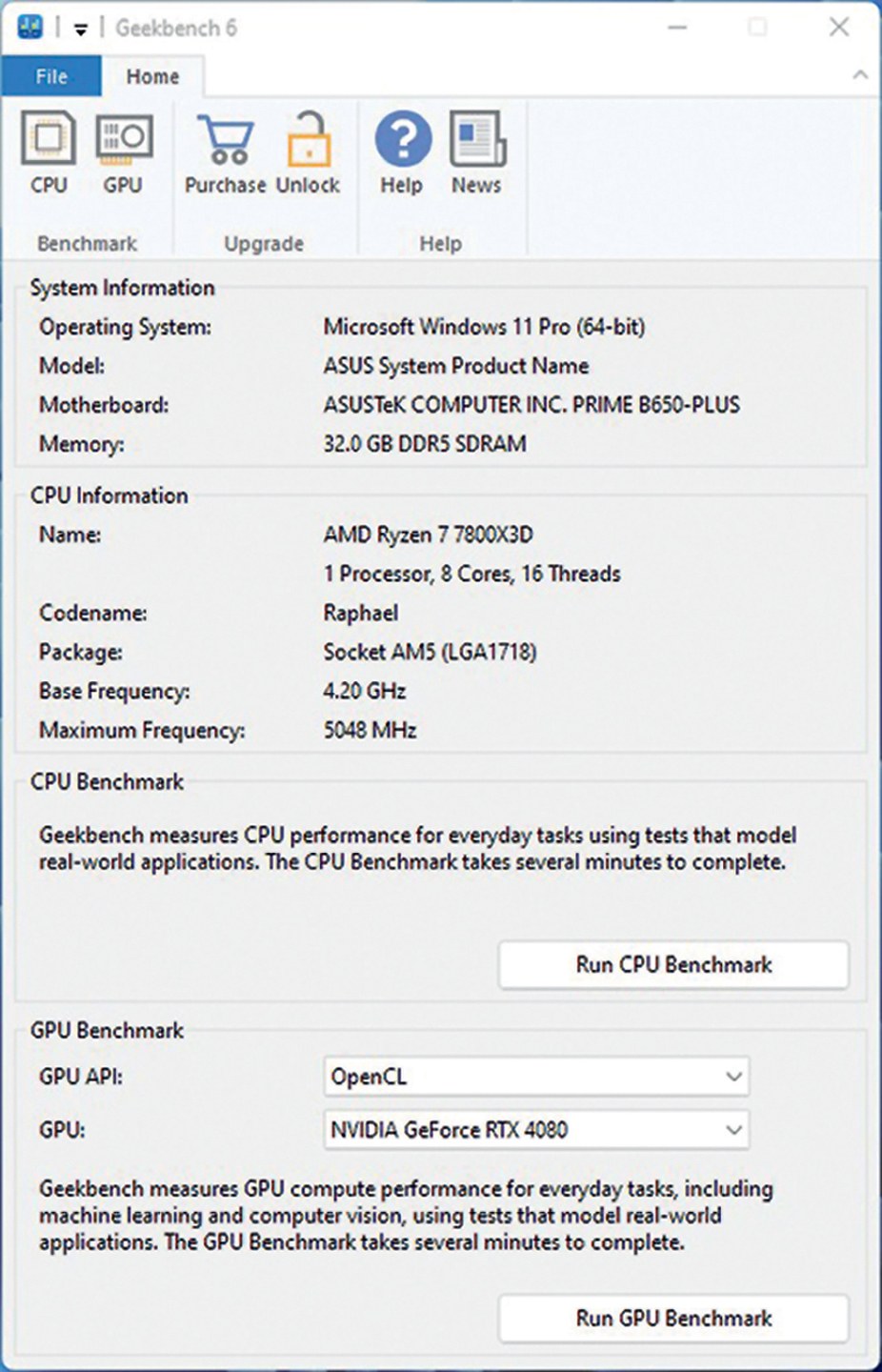 Trenutno je aktualna verzija Geekbench 6 koja donosi neke nove i unaprijeđene testove procesorskih performansi, posebno prilagođene novijim arhitekturama i procesorima s velikim brojem jezgri. Već neko vrijeme Geekbench uključuje i OpenCL GPU Compute test performansi grafičkog procesora.