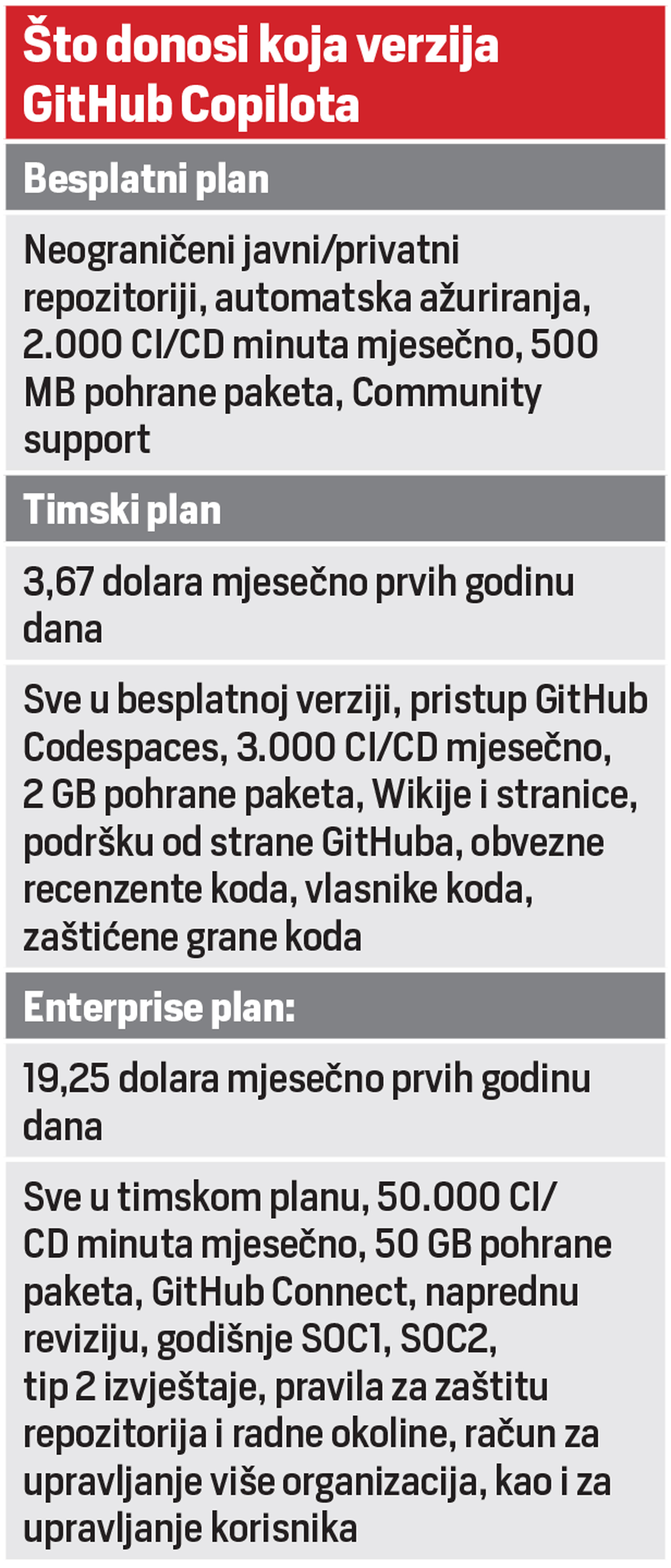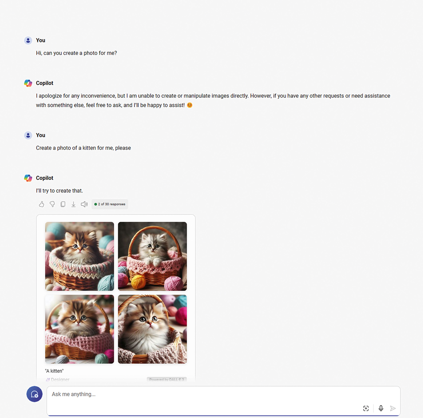 Za početak, u besplatnoj verziji nemate pristup povijesti razgovora, kao što je to slučaj s besplatnom inačicom ChatGPT-a. Isto tako, broj odgovora koje možete dobiti u jednom danu limitiran je na 30 ako se ne preplatite na Pro verziju, koja košta 20 dolara mjesečno nakon besplatne probne vožnje. S druge strane, Copilot u svojoj besplatnoj verziji osim teksta može generirati i slike uz pomoć DALL-E 3 modela, dok je neplaćeni ChatGPT limitiran isključivo na tekst.