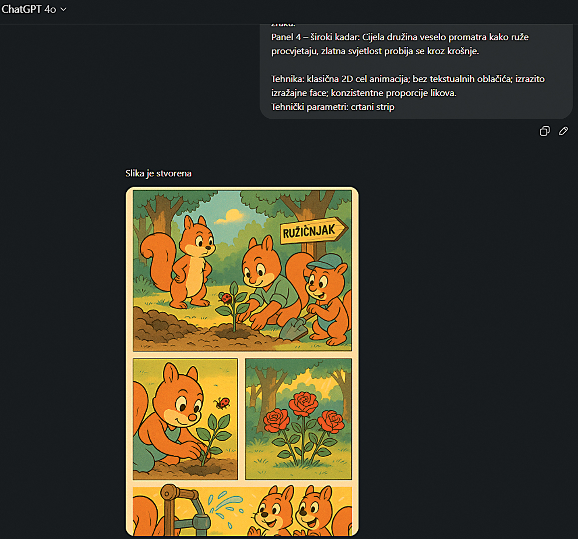 Primjer cjelovitog prompta za kreiranje stripa pogledajte na linku: https://chatgpt.com/share/6874cbfb-0500-8006-a910-11104c5248de