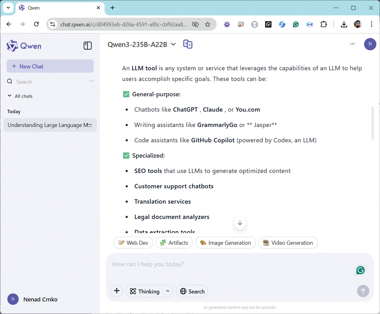 Qwen: Primjer postavljanja upita i dobivanja odgovora na Alibabinom LLM alatu Qwen