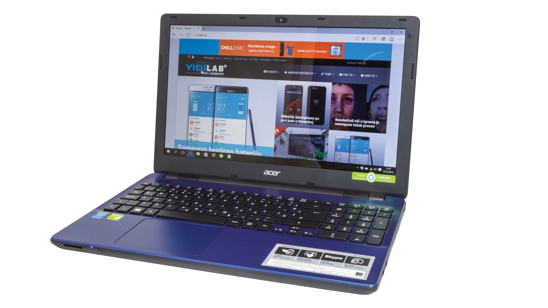 Očekivano solidna izrada Acerove E15 serije je oplemenjena neočekivano atraktivnom sjajnom plavom bojom koja ovaj model ističe od svih koje imamo u testu. Po hardveru se pak previše ne ističe. Nalazimo klasičnu kombinaciju i3 5005U i 4 GB RAM memorije, no s 500 GB HDD-om. Preferirali bismo 1 TB HDD kada već mora biti klasični, pogotovo za ovu relativno visoku cijenu. Zauzvrat pak dobivamo predinstalirani Windows 10 Home koji je relativno nakrcan nepotrebnim programima za koje bismo uložili još po 30 minuta da ih uklonimo nakon prvog podizanja sustava. U ovoj seriji se i za manje novaca može pronaći full HD ekran, no HD ekran ovog modela se može pohvaliti pristojnim kontrastom i kutovima gledanja spram FHD panela kojeg se često može pronaći.