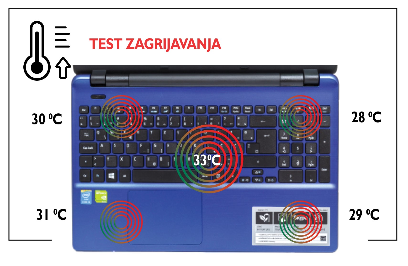 LASERSKO MJERENJE: Pod opterećenjem, uzimali smo termalne vrijednosti na dodirnim površinama laptopa