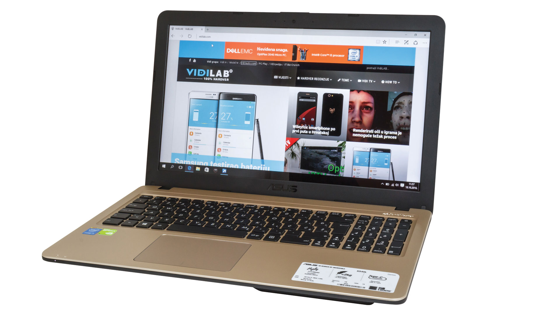 Iako bi se moglo reći da ponovno nema iznenađenja s i3 i 4 GB RAM kombinacijom, ovaj Asusov laptop ima generaciju stariji i3 4005U spram konkurencije iz testa. Time su performanse nešto slabije, no cijena je relativno visoka. Za cijenu je netipičan i 500 GB HDD, koji se čini premalen, no X540LA se počinje iskupljivati s licenciranim Windowsom 10 Home koji je, očekivano, pun nepotrebnog softvera. Ekran broji standardnu HD rezoluciju sa zadovoljavajućim kontrastom, a zadovoljavajuća je i autonomija od gotovo 4 sata. Pomalo začuđujuće obzirom na stariji čipset, tj. procesor, nalazimo USB Type-C port koji se tek treba spustiti među laptopski puk.