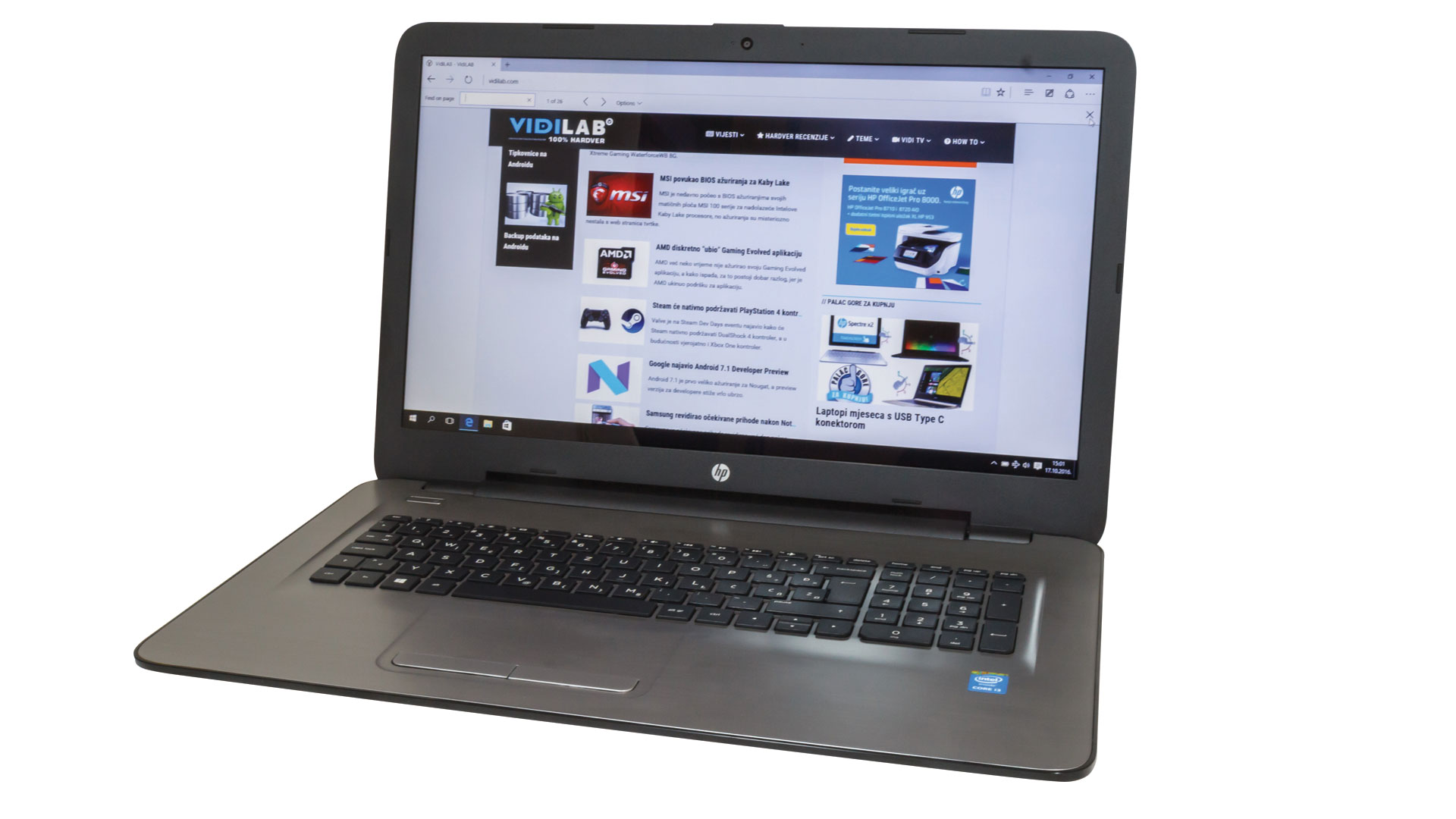 Glavna prednost ovog modela spram ostalih u testu je što za manji cjenovni premium nudi par inča veći ekran i veću rezoluciju. No na oštrini se neće previše dobiti, budući da je rezolucija više-manje proporcionalno uvećana dijagonali. Kontrast i boje bi mogle biti bolji, no svakako su zadovoljavajući, kao i kut gledanja. Ponovno nalazimo provjerenu kombinaciju i3 5005U procesora i 4 GB RAM memorije, no s 500 GB HDD-om, koji spram ostalih nudi kompromis manje prostora, bez nekog dobitka na brzini kao kod SSD-a. Međutim, spram ostalih HP modela na testu, 17-inčni model nudi nešto ozbiljniji rashladni sustav koji nudi bolje termalne sposobnosti uz nižu razinu buke.