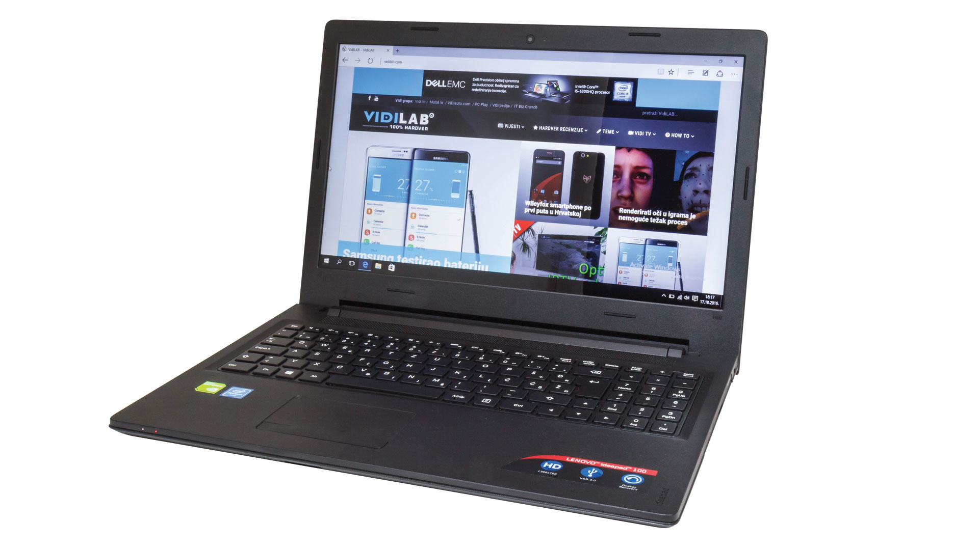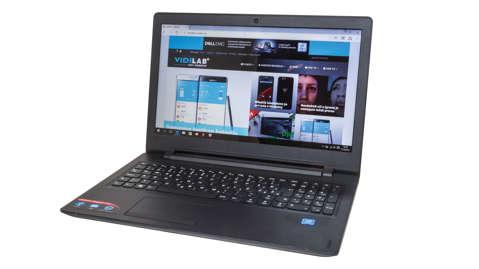 Ideapad 110 djeluje slično kao i Ideapad 100, no mnogo plemenitije i bolje. Neki problemi su uklonjeni, no preostaje problematika relativno jeftinog plastičnog kućišta. Trackpad je znatnije uvećan, a po preciznosti je nešto unaprijeđen. Iako je numerički dio proširen i broji četiri stupca, strelice su i dalje nagurane pa je desna shift tipka ponovno skraćena, no to je omanji kompromis. Većim kompromisom nam se pak čini klasični HDD od 500 GB, budući da jeftiniji model ima sasvim pristojan SSD. Ekran je spram Ideapad 100 unaprijeđen, s boljim osvjetljenjem i kontrastom, a prava prednost je predinstalirani Windows 10 Home koji svakako nismo očekivali. Pentium N7300 posjeduje prave četiri jezgre s turbo boostom, no rezultati su mu nešto slabiji u našem testiranju spram 3825U.