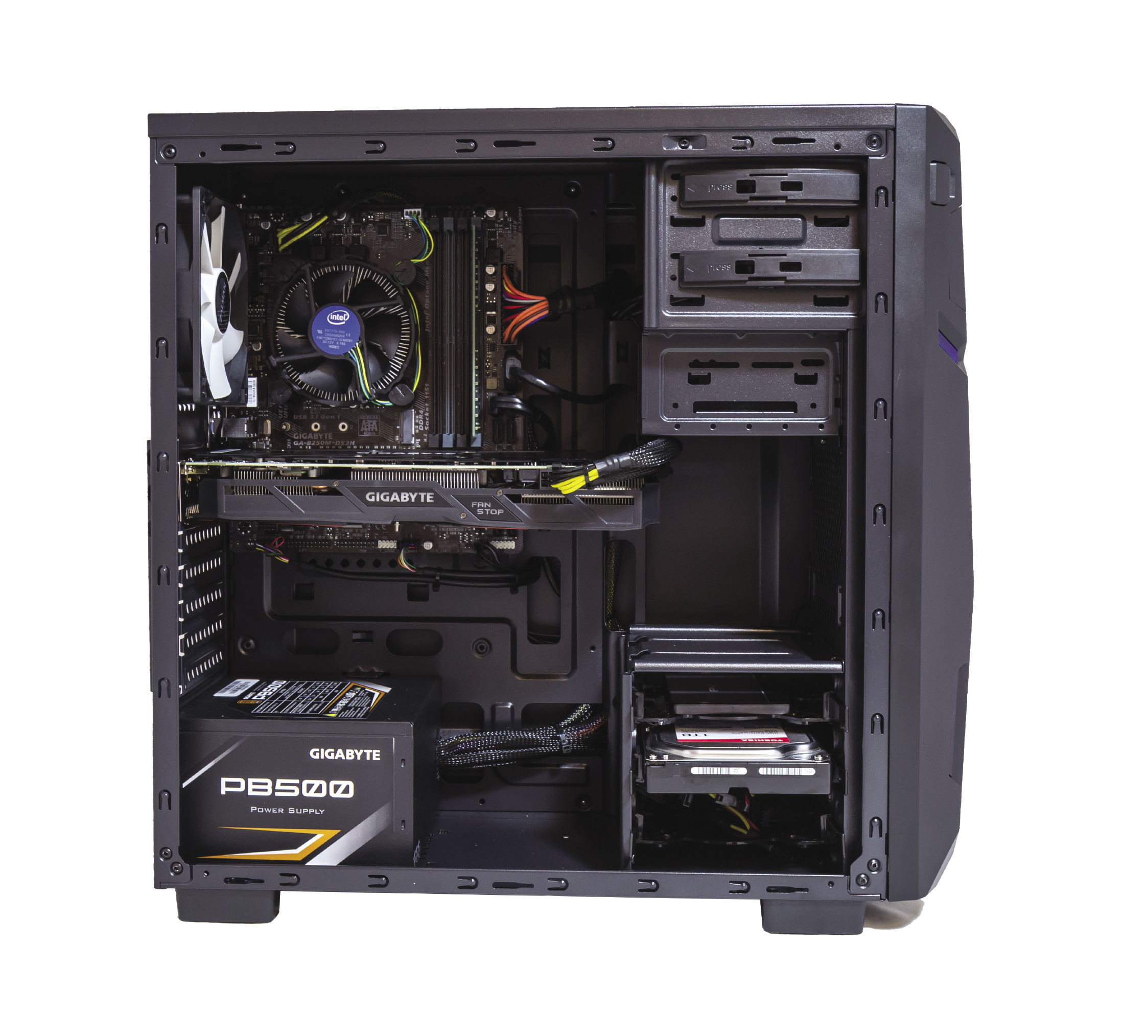 Ekipa iz Future je svoj gaming stroj zapakirala u Zalmanovo Z1 Neo kućište koje je prilično standardni Mid tower prozirne bočne stranice. S prednje stranice su rešetke, pa bi bilo dobro da su ventilatori u boji kako bi crni monolit s prednje strane dobio malo života. U unutrašnjosti je iz budgeta od 7000 kuna izvučen maksimum i ova konfiguracija stiže s potentnim i5 Kaby Lake procesorom sposobnim pogurati i mnogo jače grafičke, čime su otvorena vrata lakom upgradeu. Out of the box, računalo dolazi sa sasvim dovoljnih 16 GB DDR4 RAM-a brzine 2400 MHz, no više od te brzine cijenimo i dalje količinu radne memorije. U traženu cijenu u ovaj gaming PC build uspjeli su ugurati 128 GB SSD i terabajtni HDD. Odlična kombinacija u kojoj je SSD sistemski disk, dok ćete HDD brzine 7200 RMP koristiti za podatke. Korak naprijed bio bi SSD od 240 GB ili veći na koji bi stale jedna ili više igara. Ovako ćete nove naslove koji imaju tendenciju zauzeti i više od 50 GB ipak morati smjestiti na sporiji HDD.
