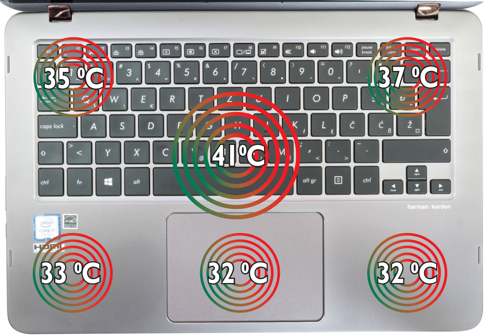 Touchpad je velik i izveden u jednoj plohi bez naznačene lijeve i desne tipke. Harman/Kadron logo prisutan je i na starijoj generaciji i mada nema tako dobro izražen bas, prilično je ujednačen prikaz svih tonova. S modelom 360 nećete puno izgubiti u odnosu na noviji ZenBook, a cijena je drastično niža i prilično dobra, stoga kotira na Best Buy listi.