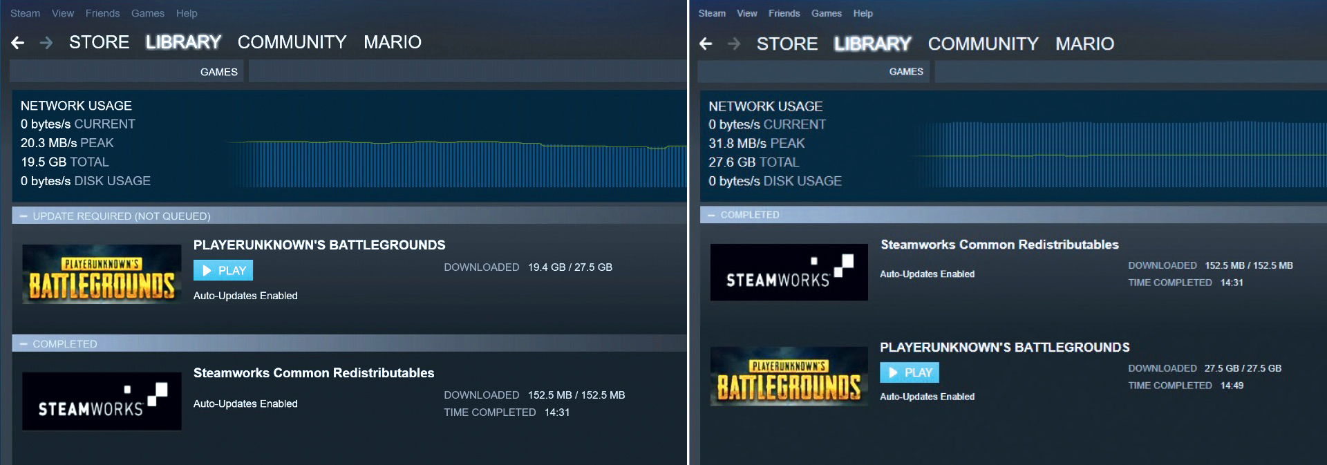 Skidali smo i popularnu igru Playerunknown’s Battlegrounds sa Steam platforme, koja je u mogućnosti ponuditi vrlo kvalitetan download, no pri skidanju igre USB tethering metodom dijeljenja mreže između 5G smartphonea i laptopa naišli smo na ograničenje propusnosti kabelom, koji nam je omogućio brzinu skidanja od oko 33 MB/s.