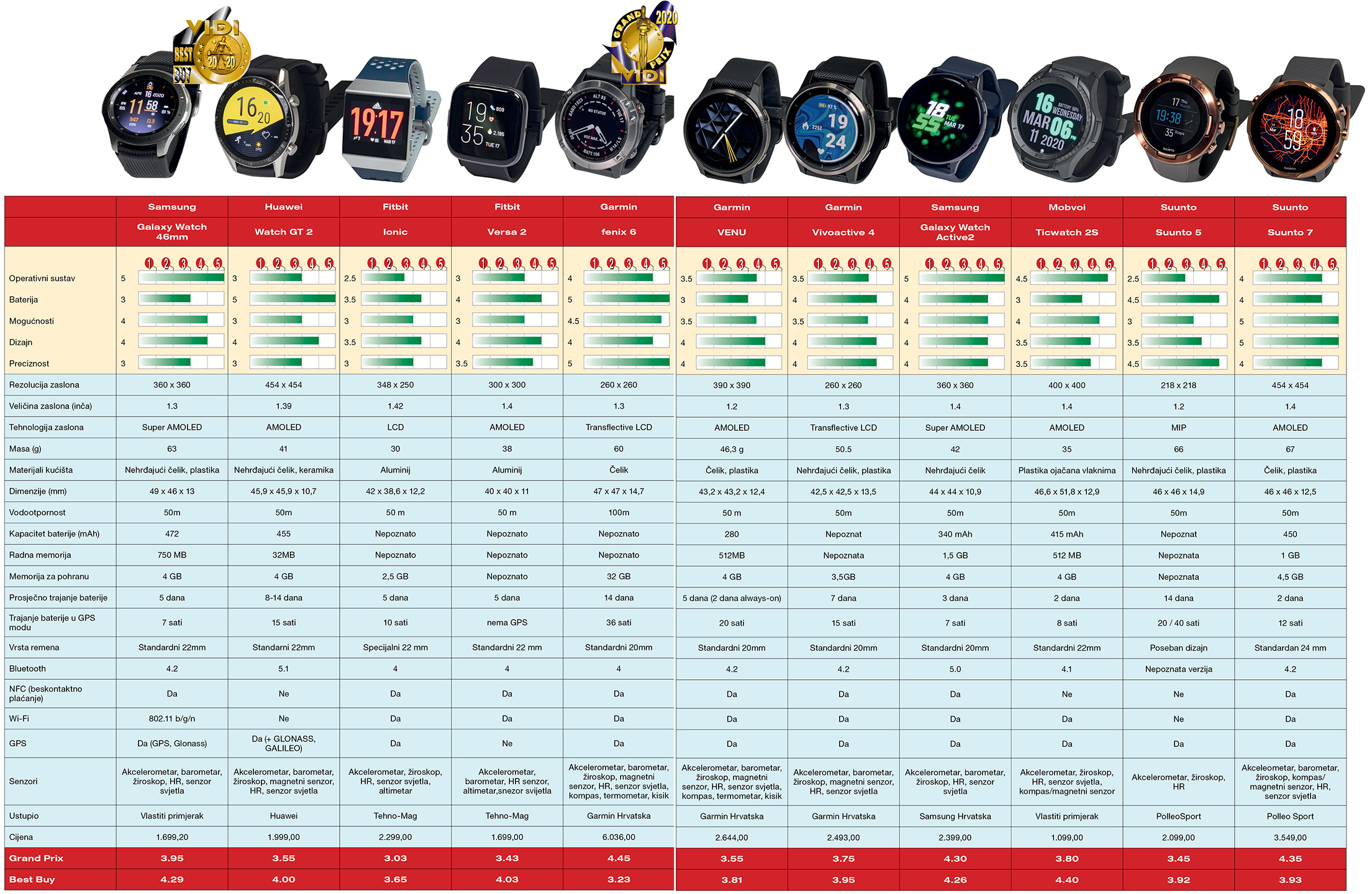 Tablica sa detaljnim podacima o pojdinom satu, kao i ocjene svih modela nalazi se u obliku slike. Za najbolji pogled, otvorite sliku u novoj web kartici.