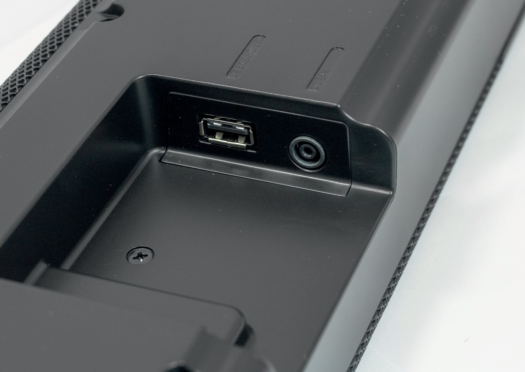 Krenimo tako od osnova, odnosno konektora straga. Tu ćete osim, naravno, napajanja koje dolazi u obje verzije: dodatne AC/DC kutije izvana ili direktnog AC dvopinskog kabla pa se struja pretvara unutar samog soundbara. Uz napajanje, gotovo svaki soundbar dolazi s digitalnim optičkim utorom za primanje audiosignala. Tehnologija radi kako i zvuči, na izlaznom utoru, u našem slučaju, televizoru, crvena LED-ica titra visokom brzinom i tako emitira signal.