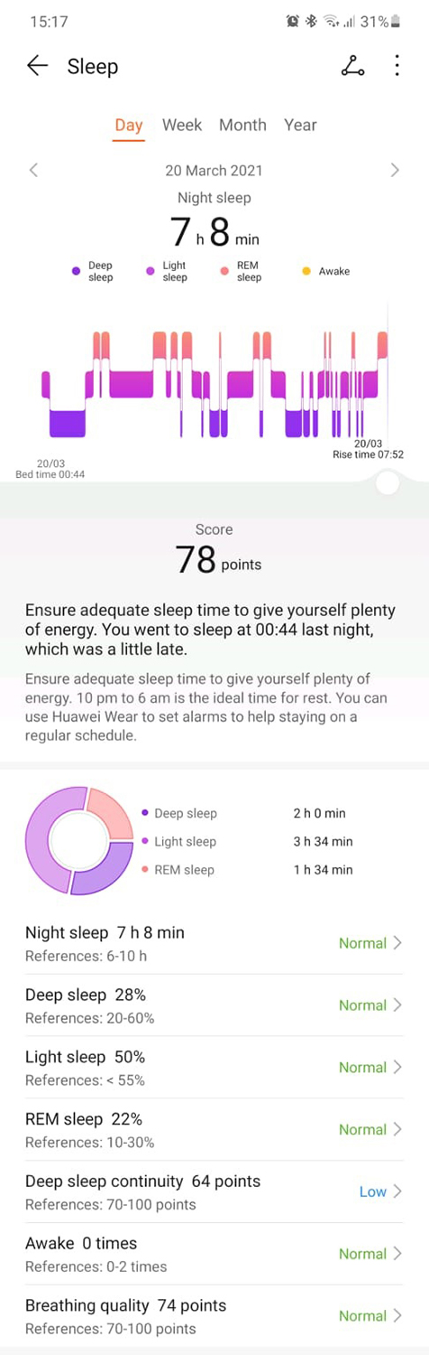 Sustav ovdje može koristiti malo naprednije mogućnosti te možda ne prepozna san prvu noć i čak vas pita kada ste spavali, no drugu noć već sam prepoznaje spavanje te je precizan u minutu s obzirom na to da se aktivira kada se krenete kretati.