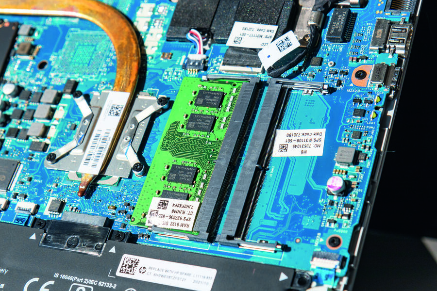 Neki bi rekli da nas je lako zabaviti, ali kada se upravo vaši testni rezultati nađu na vrhu PCMark 10 Extended Office testa, vrijeme je za pohvale. Istina, većini je bilo zanimljivije da je napokon došlo malo sunčanog vremena, no držimo se bitnih postignuća. Naime, svi laptopi na testu dolaze standardno s oko 8 GB DDR4 radne memorije u ovom cjenovnom rangu i procesoru nude dovoljno prostora za rad kakav bi korisnik mogao očekivati za office zadatke. No, dobar dio proizvođača nudi opciju kasnije nadogradnje u obliku slobodnog SO-DIMM utora (guglanjem ovog naziva lako ćete naći relevantne RAM module) u kojeg možete piknuti još 8 ili 16 GB radne memorije. Dok se dobar dio proizvođača odlučuje za početnih 8 GB već postavljenih na matičnoj ploči, HP oba modula stavlja na klasičan način tako da korisnici mogu staviti do 32 GB radne memorije, ako smatraju da im je potrebna, što je uvijek lijepo vidjeti. Bitnije, za maksimalne performanse laptopa, s obzirom na to da su im BIOS postavke u potpunosti zaključane, volimo vidjeti da početni set radne memorije radi na punih 3.200 MHz kako bi se nadograđivanjem mogla dobiti puna brzina procesora.