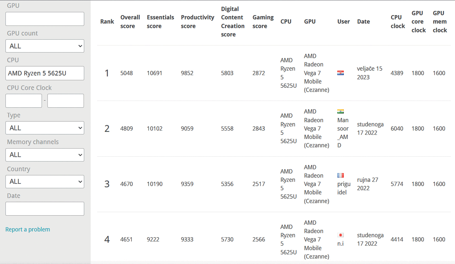 Procesor laptopa vrlo je bitan dio priče, no predstavlja samo jedan komad ukupne slike, a bitno je razumjeti što mu sve treba za dobivanje maksimuma koji može ponuditi. S obzirom na broj hladnjaka u slikama na ovom dijelu teme priča je, vjerujemo da možete i sami naslutiti, još malo kompliciranija. Na test smo dobili vrlo šarenu ponudu laptopa i sustava koji ih pogone, pa možemo detaljno analizirati što nam sve pojedini sustav može ponuditi. Limitirani smo cijenom do 500 eura, no i ovdje već nailazimo na more opcija i na par upozorenja pri kupnji s kojima je dobro biti upoznat. Tako imamo Intelove procesore 10., 11. i 12. generacije, kao i AMD-ove 5500U koji je odgovor na Intelovu 11. generaciju, te refreshani 5625U koji ide ukorak s 12. generacijom Intela u ovom cjenovnom rangu. AMD-ovi procesori koriste impresivnu ZEN 2 arhitekturu, a činjenica da imaju 6 jezgri i 12 threada često u performansama AMD-u daje jasnu prednost. No AMD je s ovom serijom mobilnih procesora pogodio i omjer potrošnje za vrijeme rada na bateriji, pa su njihovi procesori trenutno iznimno konkurentni, pogotovo kada uključimo i grafičku komponentu. Kod Intelovih procesora vidimo generacijske pomake jer je 10. generacija prva koja je kako-tako napokon prešla na Intelov 10 nm proizvodni proces i time dobila nove feature, no i dalje ima upitne performanse. Generacija 11 dolazi s novim grafičkim sustavom, Intelovom Xe arhitekturom, koja značajno poboljšava grafičke sposobnosti procesora, a poboljšanje 10 nm proizvodnog procesa rezultira višim radnim taktovima i samim time boljim performansama (i dalje gledamo samo početne i3 procesore). Naposljetku, barem za naš test, tu je 12. generacija koja i u mobilni svijet donosi Intelovu novu arhitekturu kombiniranja standardnih jezgri sa low-power Atom jezgrama kakve se mogu naći u Celeron i Pentium mobilnim procesorima, a rezultiraju impresivnim performansama u multithreadanju dok je Intel uvijek bio snažan i u jednojezgrenim zadacima.