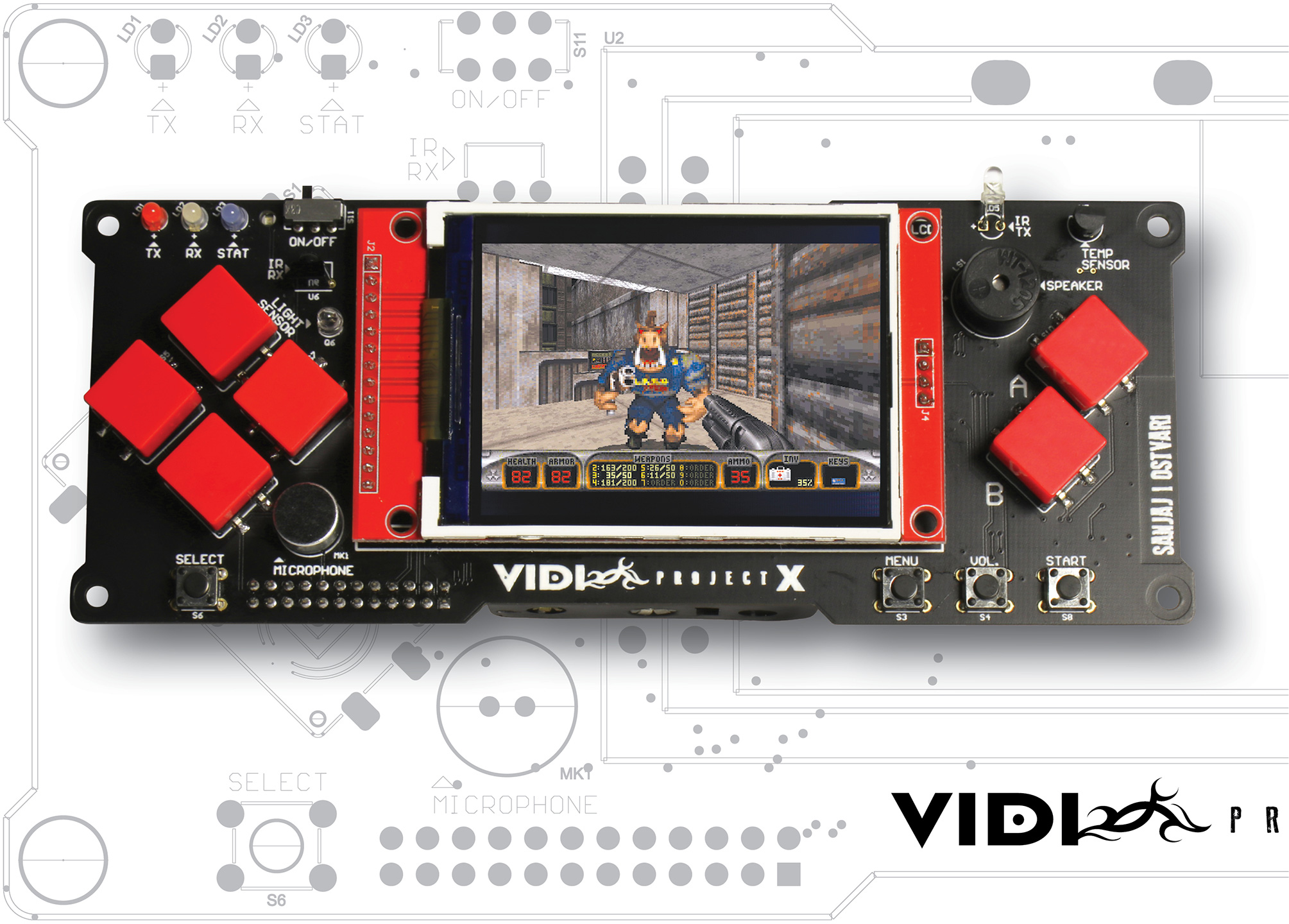 VIDI X je temeljen na dvojezgrenom procesoru ESP 32, stiže sa senzorom temperature, Bluetooth i Wi-Fi modulom, mikrofonom i 2,8’’ inčnim ekranom, a detaljnu shemu i konačni popis komponenti dobit ćete u VIDI X Starter KIT-u.