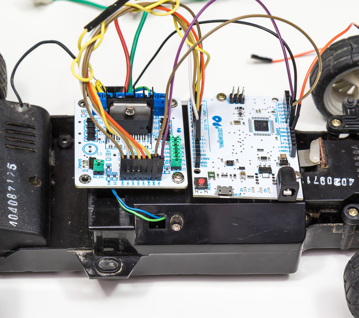 U našem primjeru koristimo spojen jumper na 5V_EN kako autić nebi trebao imati dvije baterije, a i tako dobivamo +5V napajanja s kojim ćemo direktno napajati i Arduino.