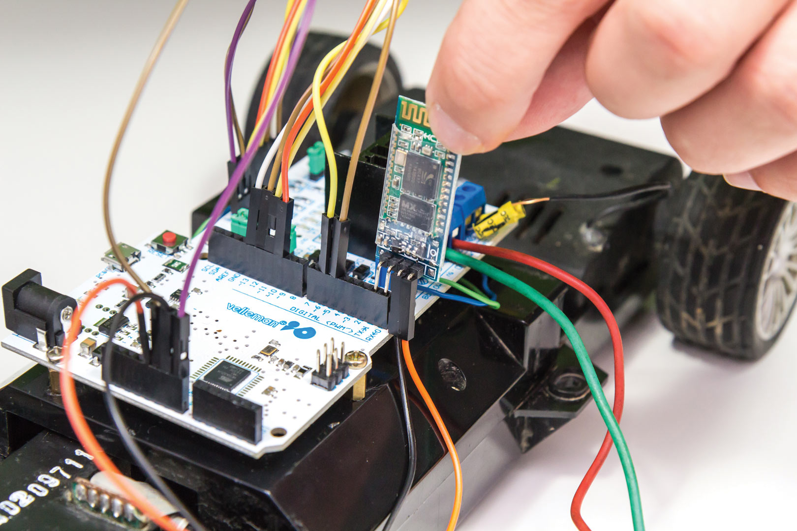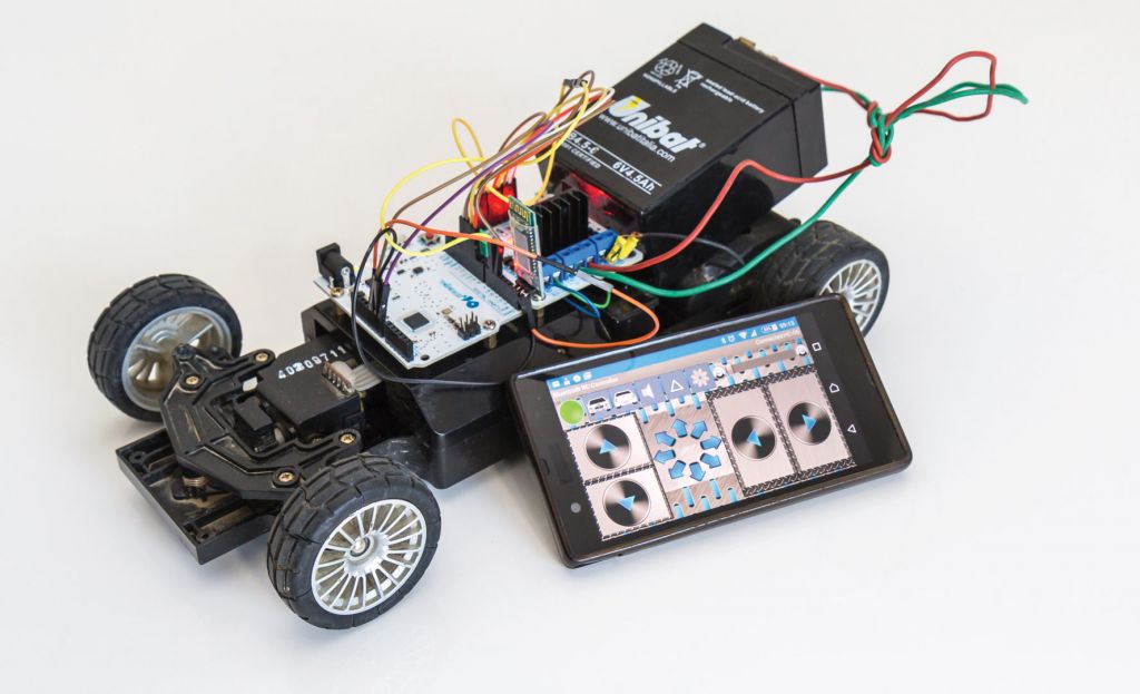 Sada će svaki podatak koji pošaljete na Bluetooth modul biti ispisan u prozoru serijskog monitora. Kako bi s mobitela mogli poslati ono što nam treba za auto na daljinski, skinite aplikaciju „Arduino Bluetooth RC Car“ s Google Play storea ili utipkajte link http://bit.ly/2rhdpq2 koji vas vodi na store do te aplikacije. Upalite Bluetooth na mobitelu, zatim aplikaciju, unutar aplikacije kliknite na ikonu zupčanika te odaberite Connect to car opciju. Sada odaberite HC-06, a defaultni password je 1234 za spajanje s Bluetooth modulom. Nakon uspješnog povezivanja, LED-ica na Bluetooth modulu konstanto će svijetliti.