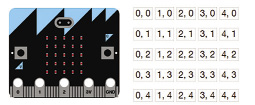 Predstavlja glavni izlazni uređaj ugrađen na samom BBC računalu. Pomoću vlastitog programa može se upravljati paljenjem i gašenjem svake pojedinačne LED diode u matrici 5 x 5 dioda, odnosno upravljati jačinom osvjetljenja. Da bi se upravljalo pojedinačnom diodom u vlastitom programu potrebno je poznavati oznaku svake diode (način obilježavanja prikazan je na pratećoj slici uz tekst). Iako je riječ o vrlo primitivnom “ekranu”, zapravo je sasvim dovoljan za prve korake u programiranju. Sistemski dio softvera ugrađen u BBC pojednostavljuje prikaz slova ili čak čitavih poruka tako da na ekran jednostavno šaljete znakove umjesto da u takvim situacijama također brinete o paljenju i gašenju svake pojedine diode kako bi prikazali traženo slovo.