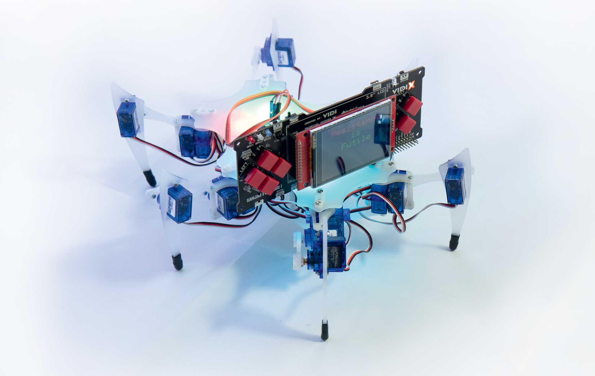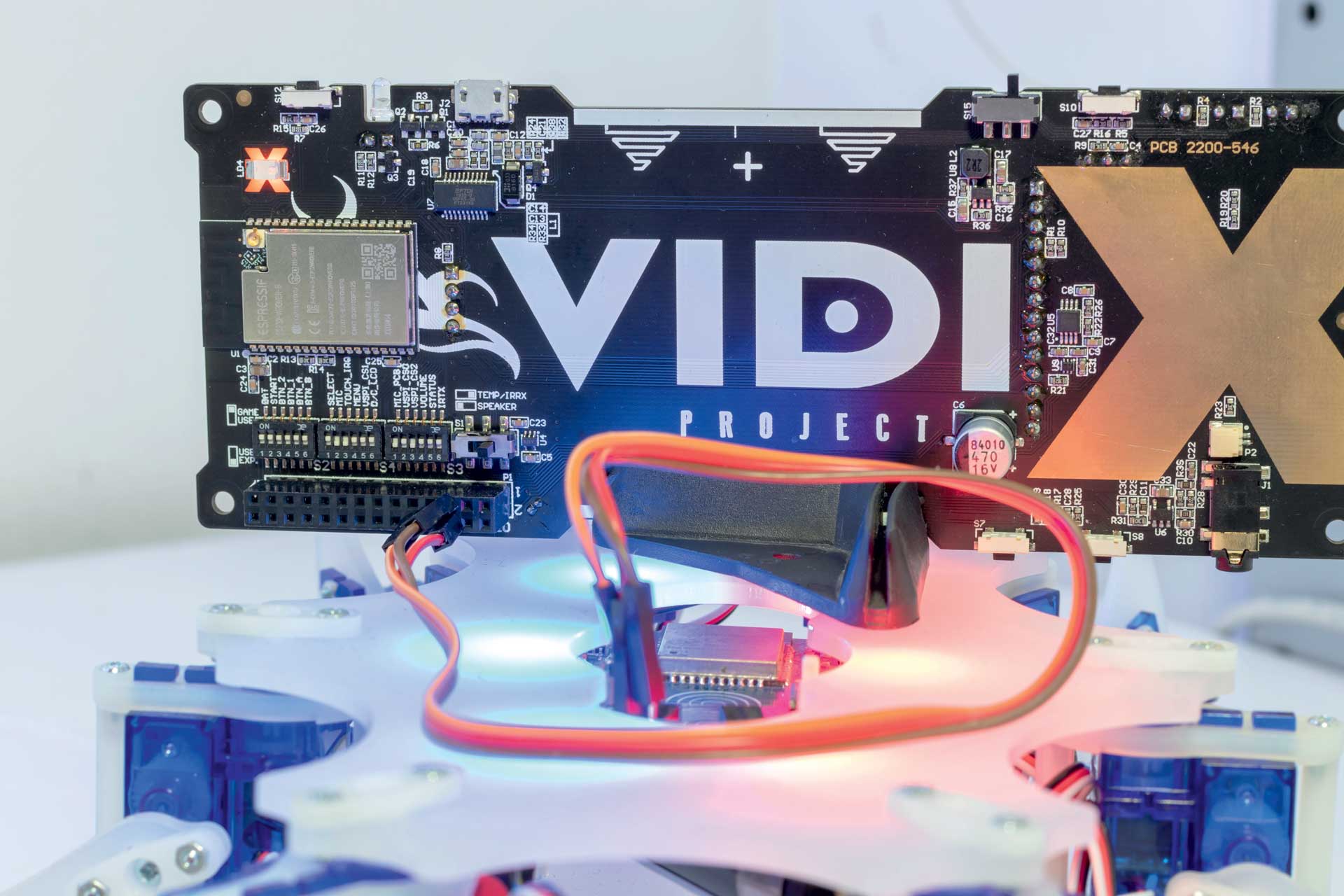 No kako bismo proširili mogućnosti robota, povezat ćemo ga s VIDI X mikroračunalom. Kada su povezani, moguće je VIDI X mikroračunalo iskoristiti za upravljanje Hexapodom te mu naređivati što raditi tj. kuda se kretati.
