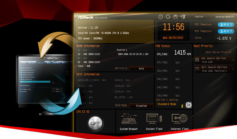 Dolazi s programom UEFI EZ Mode koji prati stanje sustava, kao što je brzina procesora, SATA informacije, brzinu ventilatora itd. Purity Sound 3 donosi 7.1 audio sustav s Realtekovim ALC1150 audio codecom.