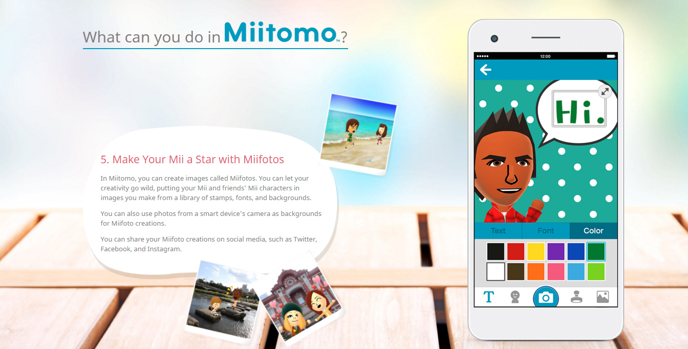Time je zamijenio messaging aplikaciju s high-end emojiesima, Line. Miitomo aplikacija je nastala u suradnji s DeNA-om, pružateljem mobilnog portala i e-commerce internetskih stranica u Japanu.