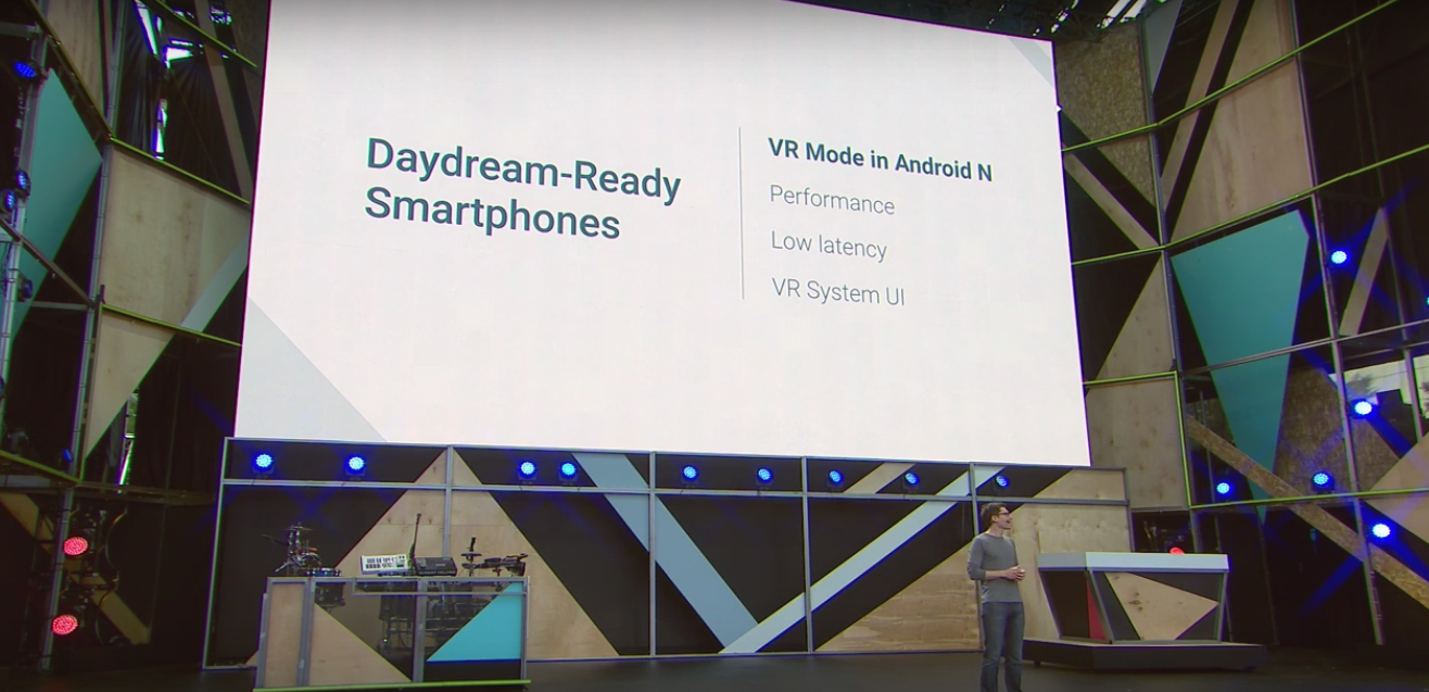 No nisu zapostavili ni VR tehnologiju koja ove godine doživljava svoj procvat, ne samo u obliku hardvera već i softvera i periferije (3DRudder, Roto VR stolac itd.), najavivši koncept za svoj Google VR headset, koji se nastavlja na njihov veliki uspjeh s jeftinim Cardboardom. Uz to, potpredsjednik Googlea za VR, Clay Bavor predstavio je i VR platformu za Android N, pod imenom Daydream.