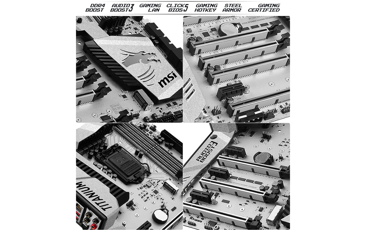 Z170A MPOWER GAMING TITANIUM matična ploča također podržava Turbo U.2, s tim da na ovoj ploči ona ima dva takva slota. Uz najnovije tehnologije, ploča ima i Steel Armor titanijski backplate za još bolju čvrstoću ploče. Osigurana je i njihova DDR4 Boost tehnologija i DDR4 Steel Armor koja radnoj memoriji daje pouzdanost i performanse do DDR4-3466 za X99 i DDR4-3866 za Z170 ploču. Oba dva modela imaju i Game Boost s osam brzinama do 5 GHz overclockinga u jednoj sekundi. Za korisnike koji teže ekstremnom overclockingu kompanija je u ploču ugradila i OC Engine i novi OC Optimizer.