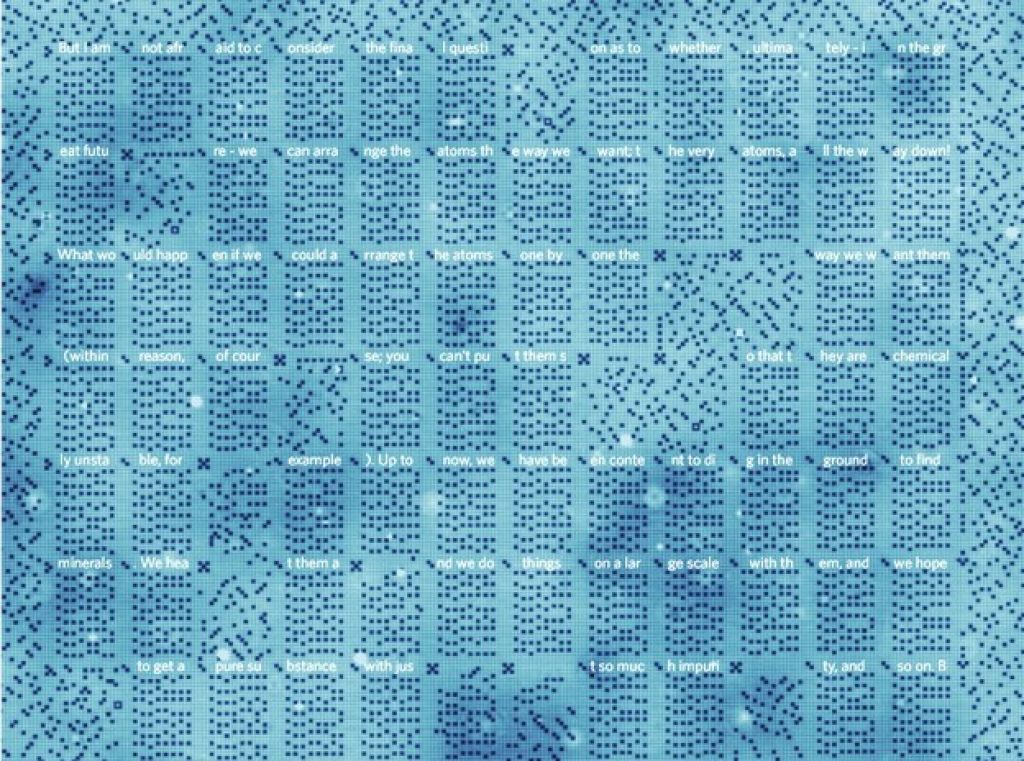 Obzirom da su atomi okruženi s drugim atomima klora (osim u blizini rupa), ostaju na postavljenom mjestu, pa znanstvenici vjeruju da je ova metoda puno stabilnija u odnosu na korištenje slobodnih atoma i time automatski pogodnija za praktičnu primjenu u aplikacijama za pohranu podataka. Kao dokaz koncepta TU Delft je enkodirao dio poznatog predavanja fizičara Richarda Feynmana pod nazivom "Mnogo je prostora na dnu" (There's plenty of room at the bottom), na područje širine od 100 nanometara.