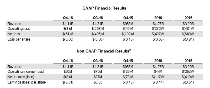 U nastavku možemo vidjeti AMD-ove rezultate koji kažu kako je zarada u četvrtom kvartalu 2016. iznosila 1,1 milijardu dolara, a zabilježen je i operativni gubitak od 3 milijuna dolara. U brojkama se ne krije ništa posebno značajno, no AMD-ovi fanovi, kao i čitava industrija PC hardvera očekuju kako će ova godina biti prekretnica za AMD.