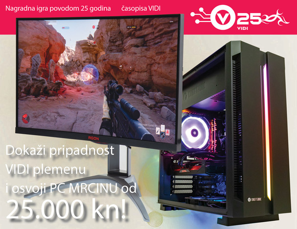 Temu smo zaključili nagradnim natječajem u kojem poklanjamo PC MRCINU od 25.000 kuna. Za sudjelovanje vam je dovoljno poslati jednu svoju sliku s časopisom VIDI, objaviti ju na Twitteru, Instagramu ili Facebooku te uz nju staviti jedan od 25 hashtagova koje ćete pronaći u najavi natječaja u časopisu. Među tim hashtagovima odaberite oznaku onog "plemena" kojem pripadate poput #virtualreality, "foto, #vidi, #opensource, #stem itd.