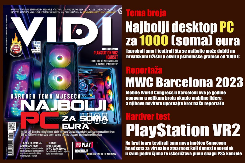 U novom broju časopisa VIDI br. 325 za travanj 2023. donosimo vam obilje zanimljivih tema, među kojima dominira test PC računala za 1000 eura.