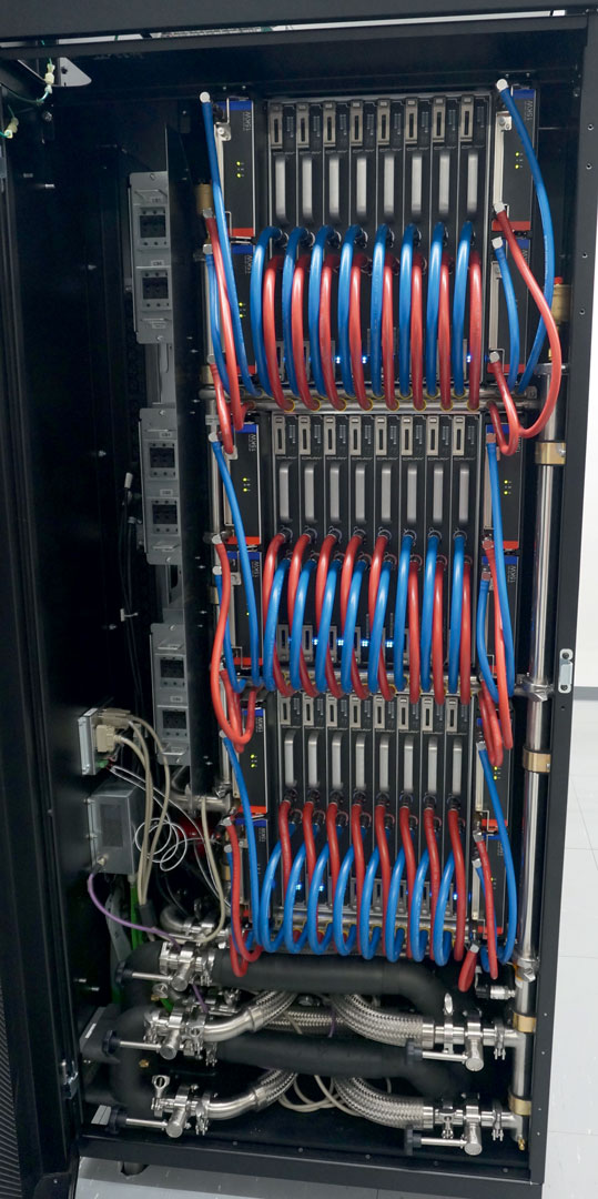 Unutrašnjost superračunala: Vrlo je uredna, vide se samo cijevi za hlađenje.