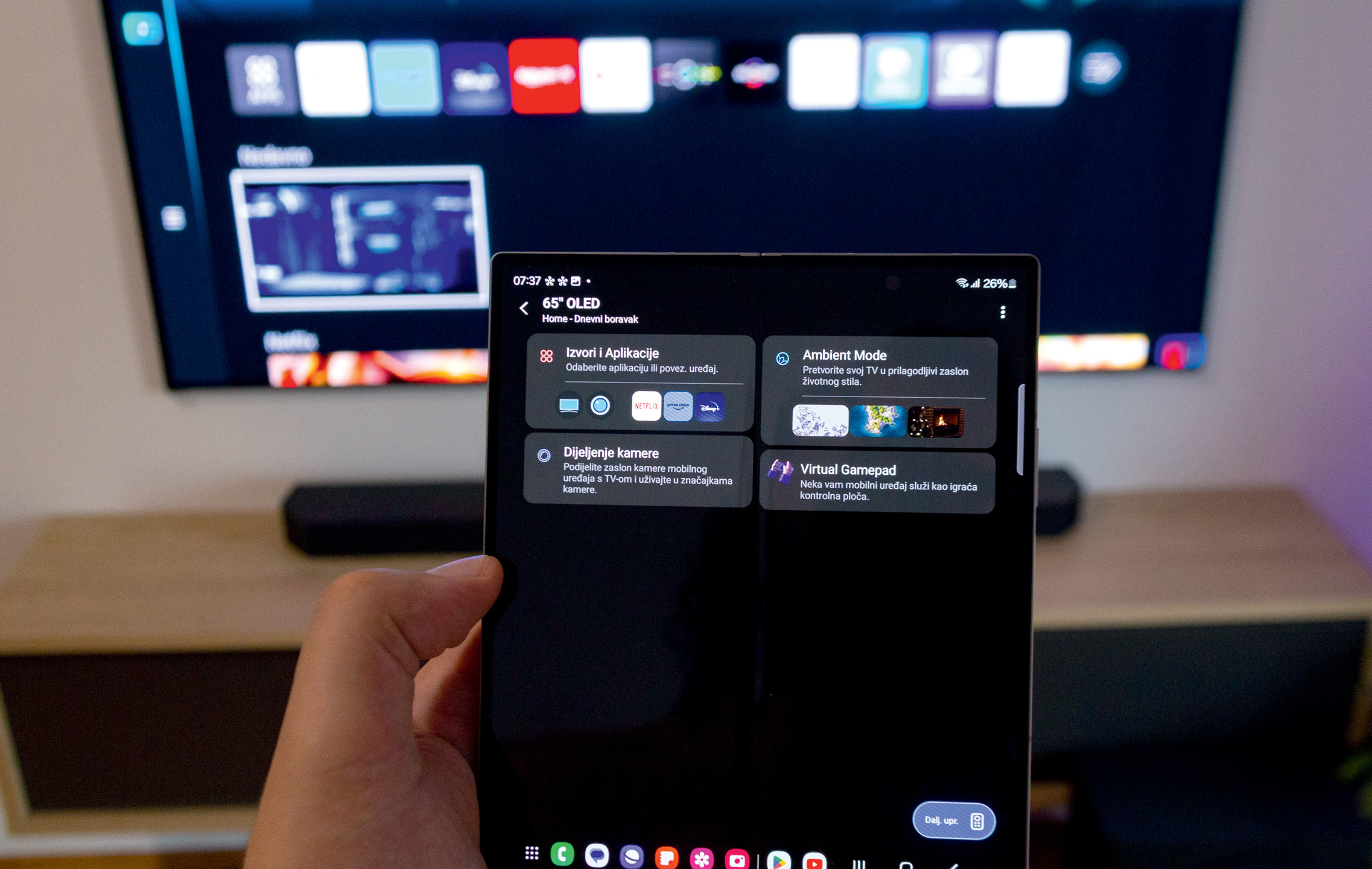 Rast i razvoj pametnih uređaja, njihove snage i samim time mogućnosti, omogućio je uistinu povezan kućni sustav uređaja, od zabave, do pomoći u svakodnevnim zadacima. Mi smo se zabavili povezivanjem novog Samsung TV-a, soundbara i, naravno, mobitela koji svime upravlja da vidimo što nam sve omogućuje pametan sustav zabave.