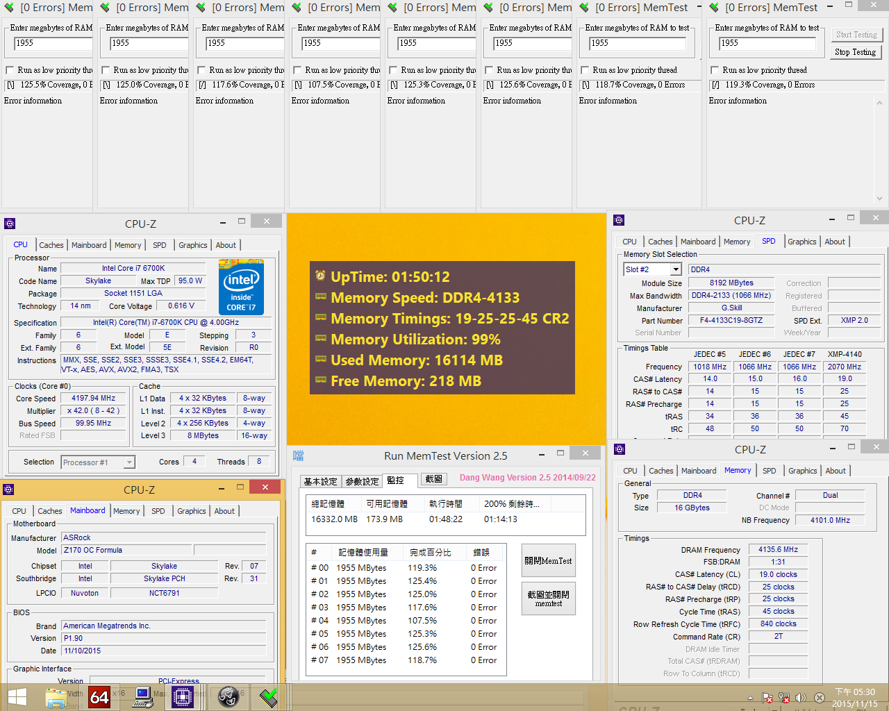 Memorija je bila na testiranju, a rezultat toga možete vidjeti na sljedećoj slici. Testirana je u konfiguraciji s Intel Core i7-6700K procesorom i ASRock Z170 OC Formula matičnom pločom.