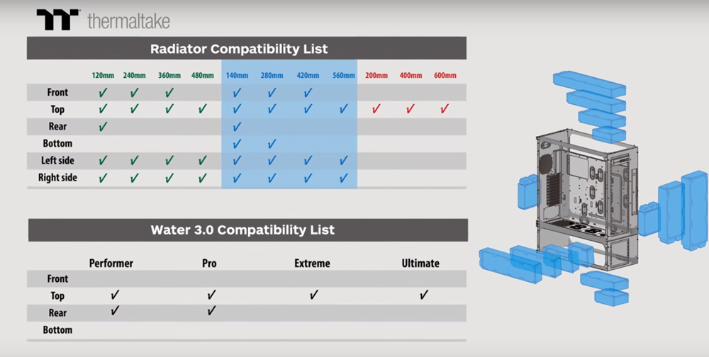 Što se tiče P100, ono posjeduje mogućnost za veliki vodeni hladnjak i drive bayove, a može ga se namjeniti i za rađenje dualnog sustava hlađenja.