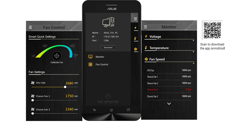 U suradnji s TUF "Detektivom" 2 može bežičnim putem kontrolirati ventilator preko mobitela ili tableta.