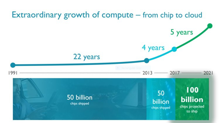 ARM je sada objavio kako do 2021. godine na tržište želi isporučiti 100 milijardi čipova, što definitivno nije jednostavan zadatak, obzirom da je to jednak broj čipova koje je tvrtka isporučila u periodu od 1991. do 2017.