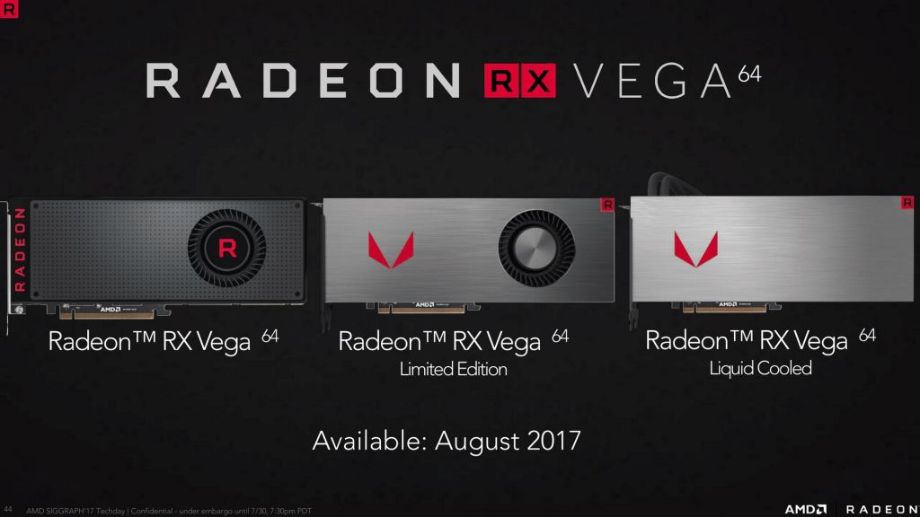 Kartice bi trebale biti konkurencija Nvidijinim GTX 1070 i GTX 1080. I dok Vega 64 nije jača od GTX 1080, AMD ističe viši minimalni framerate u igrama s karticom na vodeno hlađenje kao ključnu prednost nad Nvidiom.