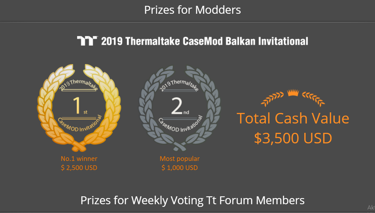 Pobjednike natjecanja, kao i sretne glasače čekaju vrijedne nagrade, a glasanje (voting) započinje 22. lipnja. Detaljne Informacije potražite na poveznici: https://casemod.thermaltake.com/2019Balkan.