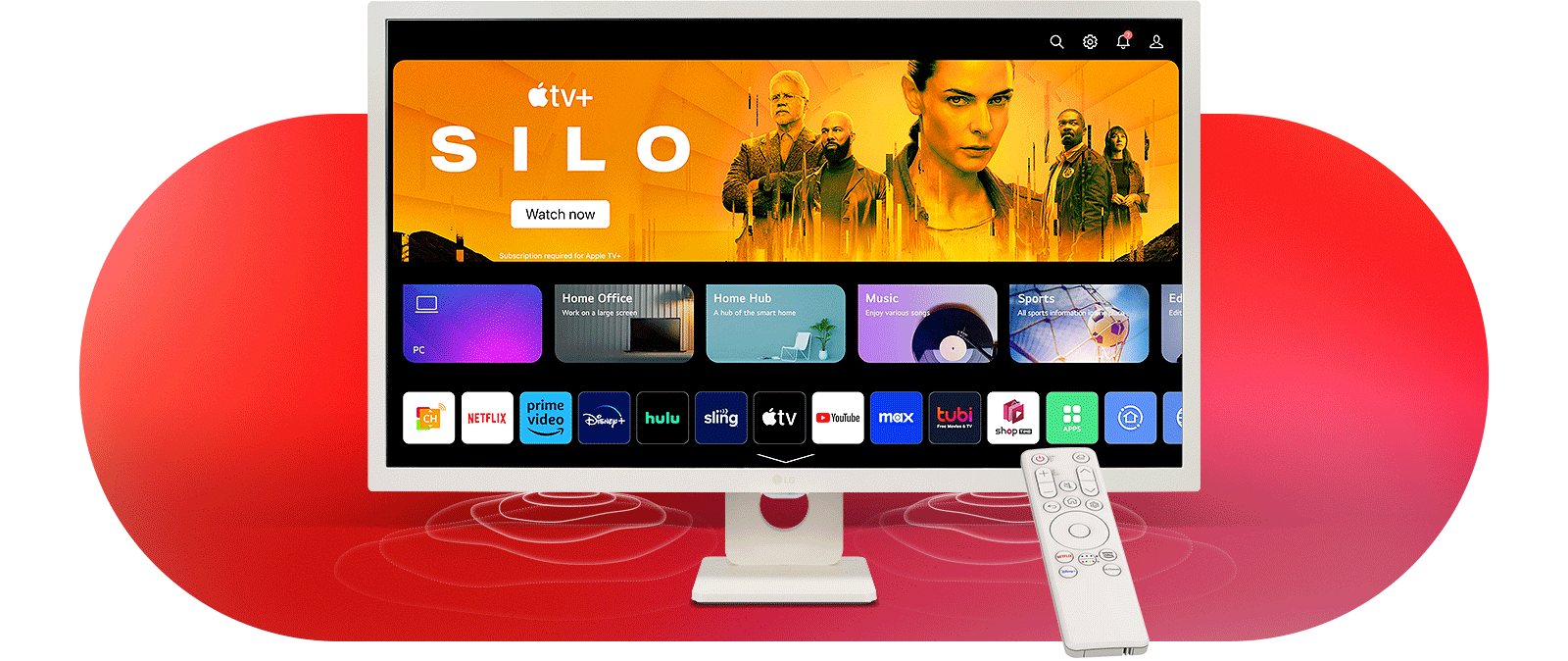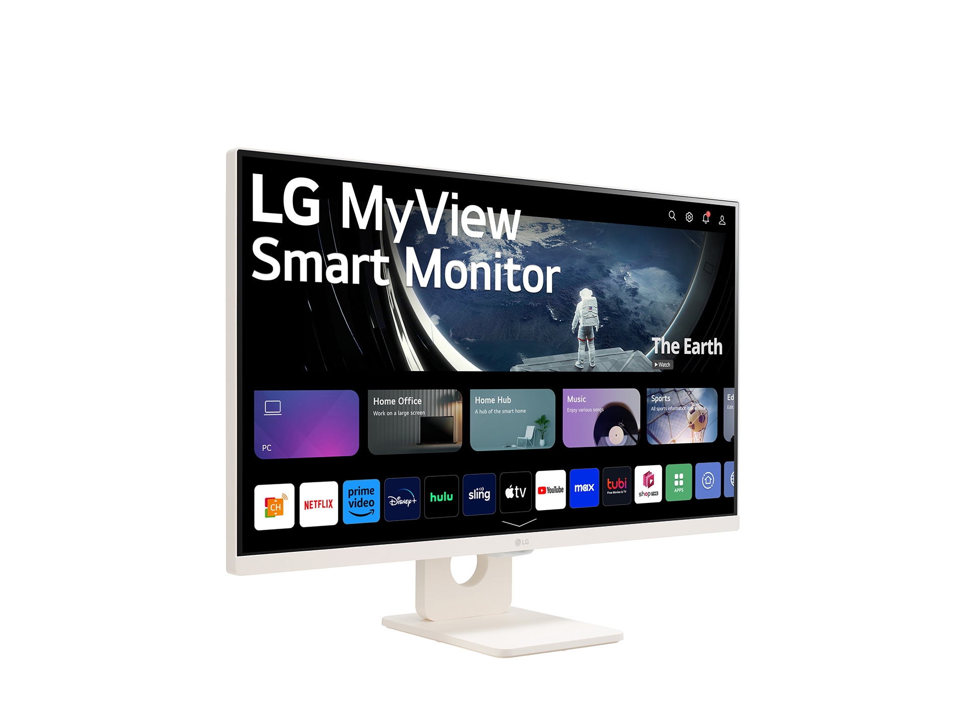 LG MyView smart monitore pokreće webOS, što im daje prednost u odnosu na druge običnije monitore. Upravljanje aplikacijama i karticama usluga je jednostavno, a osim toga, možete i brzo pristupiti nedavno korištenim aplikacijama i provjeriti obavijesti. Također možete koristiti usluge u oblaku kao što su Microsoft 365 ili Google Workspace bez povezivanja s drugim računalom, te istražiti brojne sadržaje i streaming usluge kao što su Netflix, Prime Video, Disney+, YouTube i Apple TV. Možete i primati prilagođene preporuke od sadržaja do glazbe i uživati u ugrađenim aplikacijama kao što su Sports i LG fitness.
