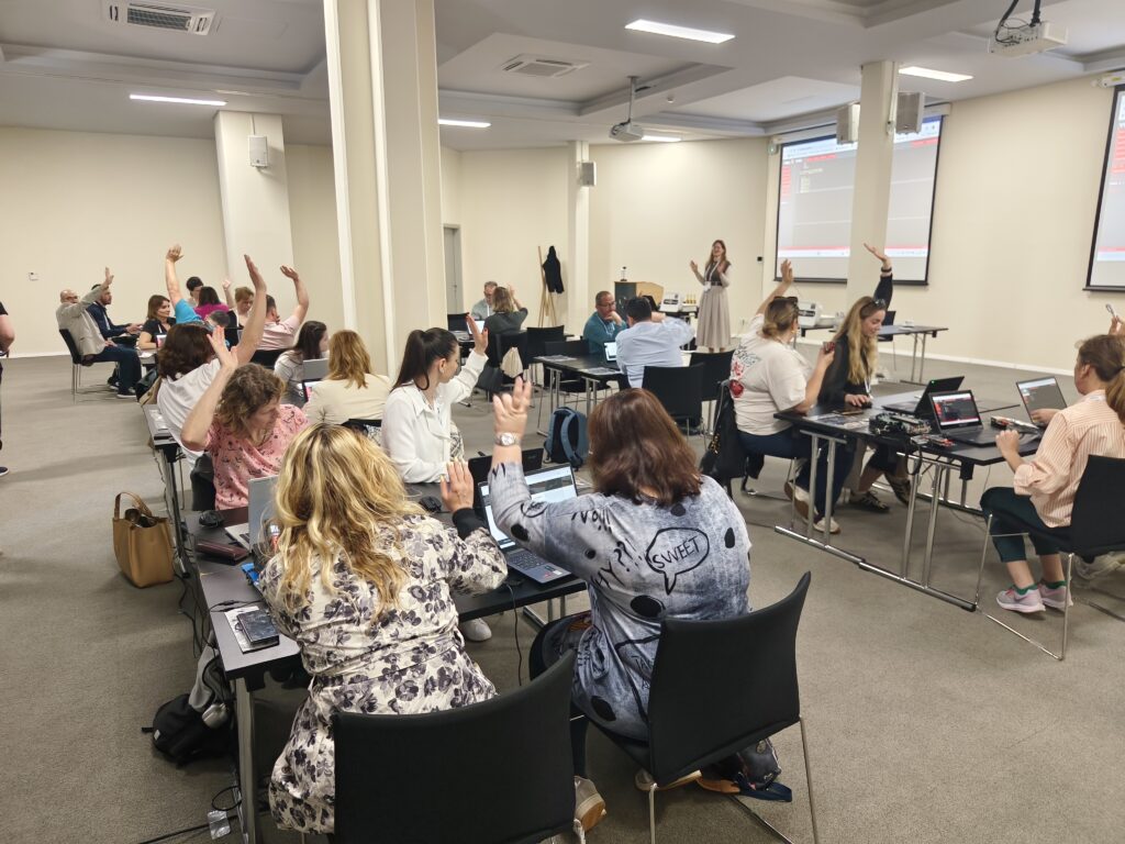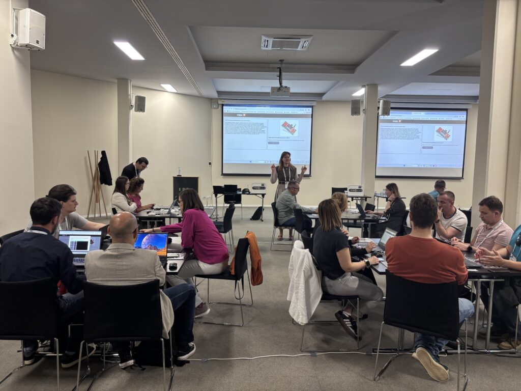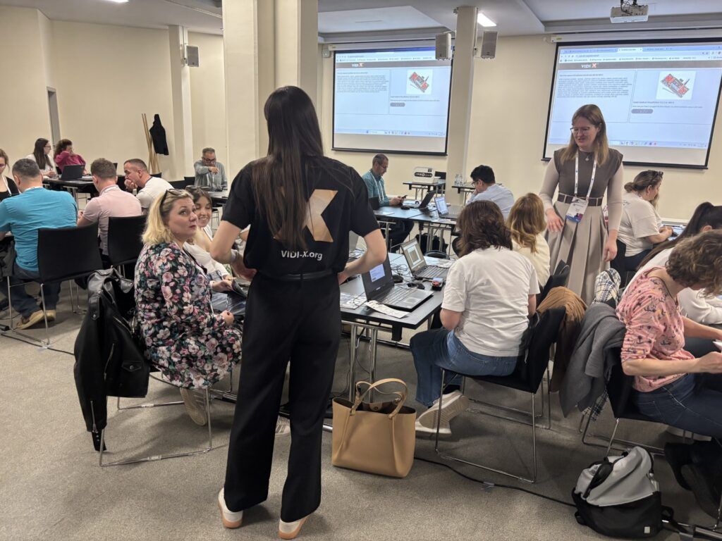 Profesorica Mihaela Kelava je na radionici “Kreativno programiranje uz VIDI X i Python” izuzetno vješto provela 30 sudionika kroz fascinantan put od prvog spajanja kabela do funkcionalnog Python koda na VIDI X mikroračunalu te pokazala kako VIDI X može postati igralište za kreativno progrmiranje uz pomoć AI-a.